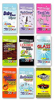 This product is functional wet tissue that can wash add polish without applying water. Also the product is developed into eight different types so it can be used for various tashs in all places of daily life.